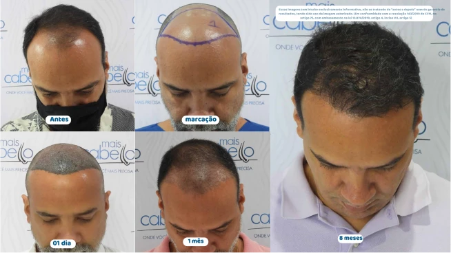 Utilizamos a técnica FUE, menos invasiva, sem cicatriz visível e com recuperação rápida.